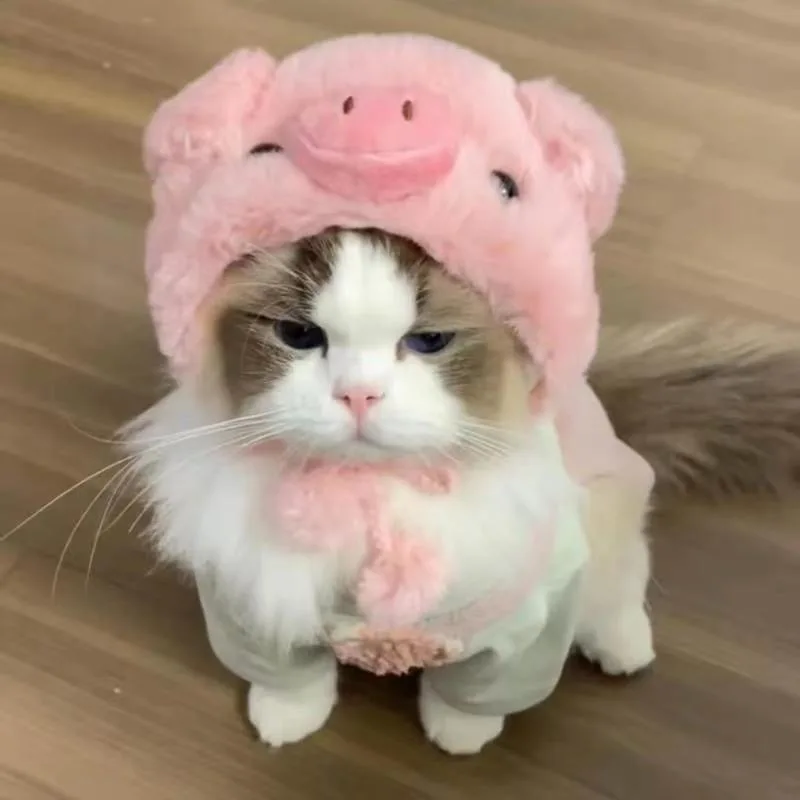 תחפושת Funny Pet Headband Plush Yarn Cat Dog Cap Panda Pig Pet Warm Cosplay Accessories Photo Props Headwear for Dog and Cat고양이