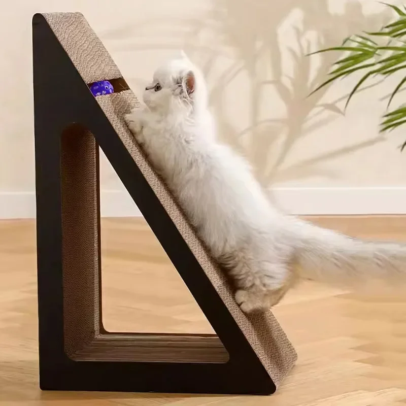 2 in 1 Cat Scratcher Cardboard With Ball Triangles Cat Scratching Board Wear-resistant Cats Clawing Board Pet Climbing Frame