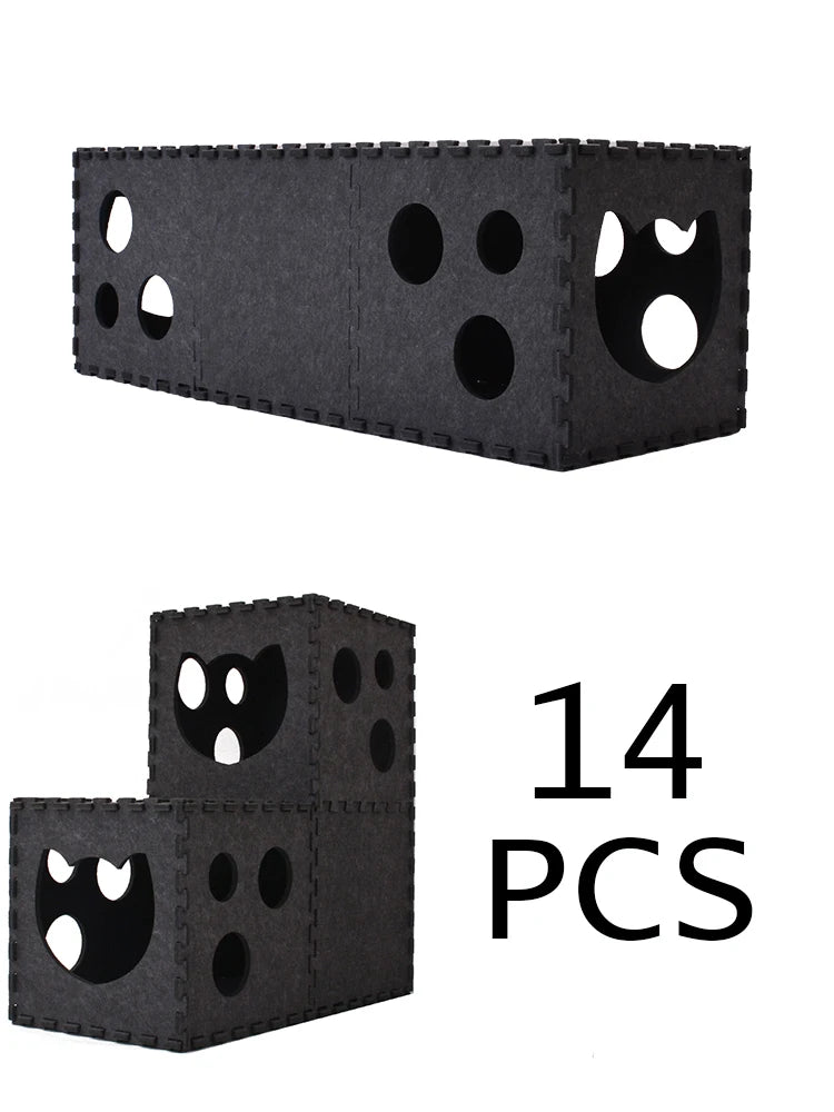 Cat Dog Toy Felt Pom Splicing Cat Tunnel Deformable Kitten Nest Collapsible Tube House Interactive Pet Toy Cat Dog Accessories