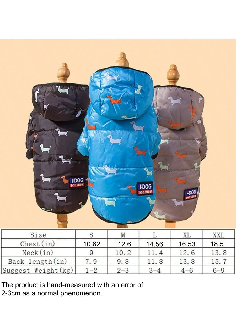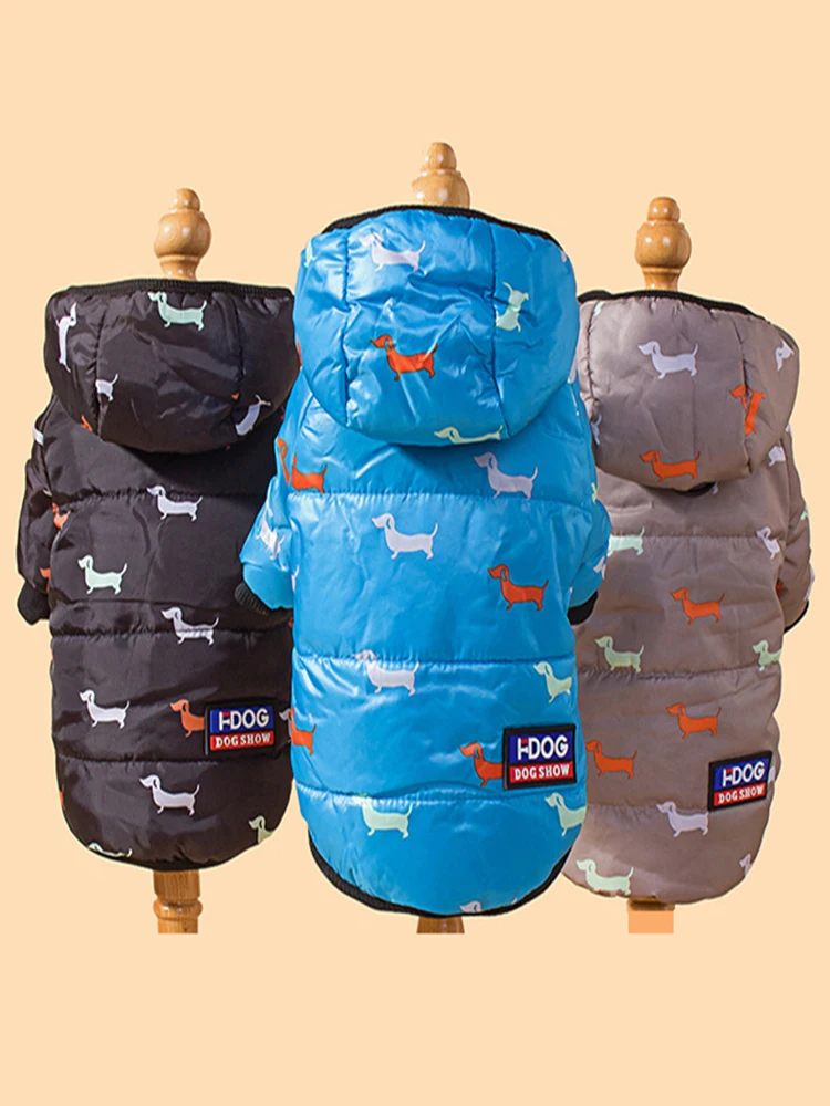 Hot Printed Cotton Down Jacket Autumn Winter Clothes For Dogs With Leash Ring Thicken Hoodie For Small Medium Dogs Puppy