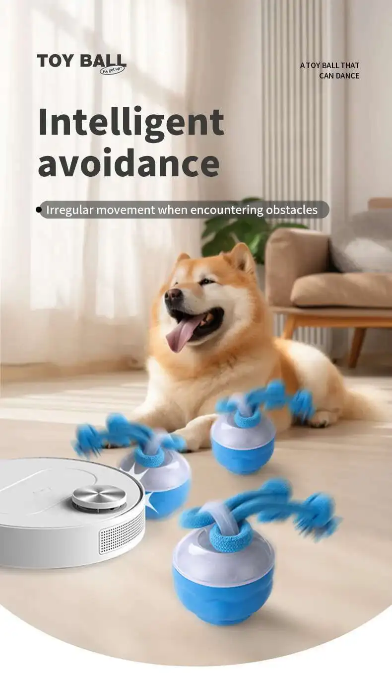 Interactive Dog Toys Smart Rolling Ball With Rope Motion Activated Automatic Moving Squeaky Dog Training Puppy Chew Toy Balls