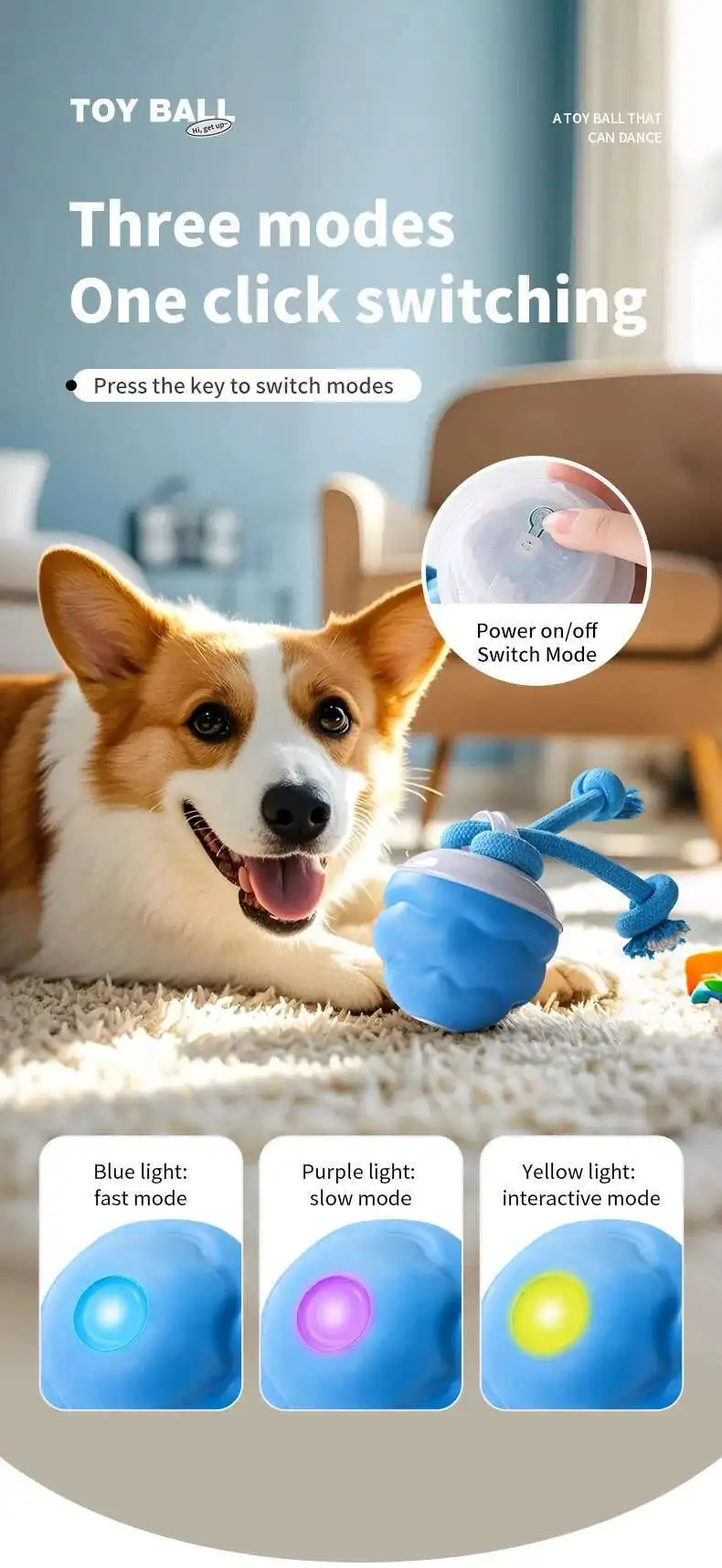 2. Customizable Play Modes: Equipped with three distinct modes: normal, fast, and interactive: this electric rolling ball allows you to easily switch settings to match your dog's play style and energy level, ensuring a tailored play experience.