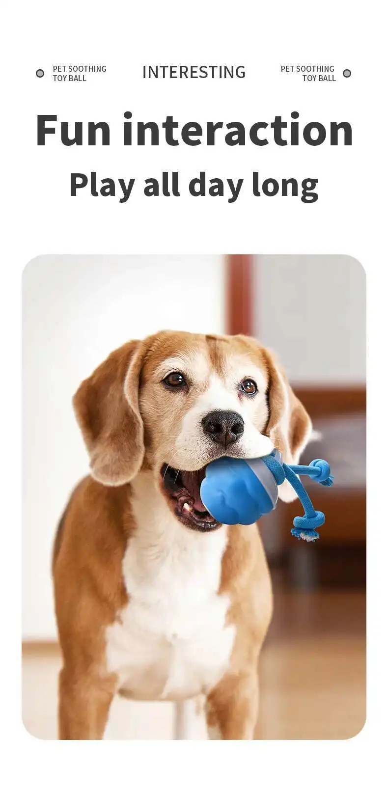 1. Engaging Interactive Play: This interactive dog toys ball features a detachable, washable rope that moves unpredictably, enticing dogs to chase and play. It provides mental stimulation and endless fun, keeping your pet entertained and busy throughout the day.