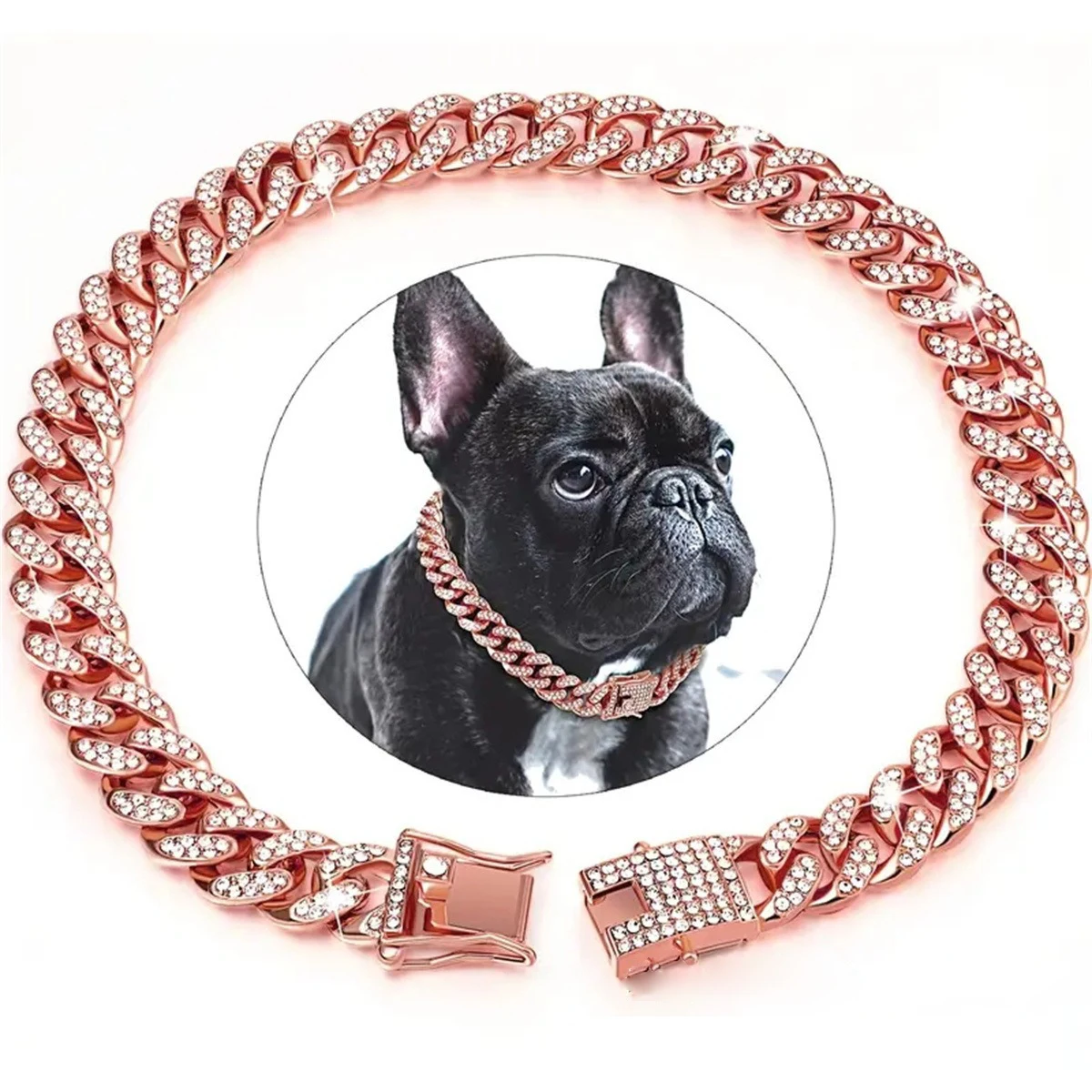 New Style Pet Collar Necklace Cat Dog Full Diamond Cuban Chains Dog Chains Lock Buckle Gold Silver Rose Gold Pet Supplies
