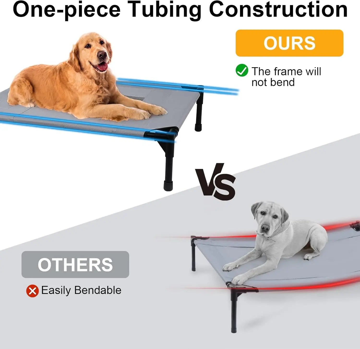 【Sturdy and Durable】In order to extend the service life of the dog outdoor bed, we added an extra support leg in the middle of the frame to effectively prevent the frame from breaking. In addition, compared to the 0.03-inch steel pipe used in ordinary dog bed elevated, we use 0.04-inch thick steel pipes, which can bear a load of up to 150 pounds.