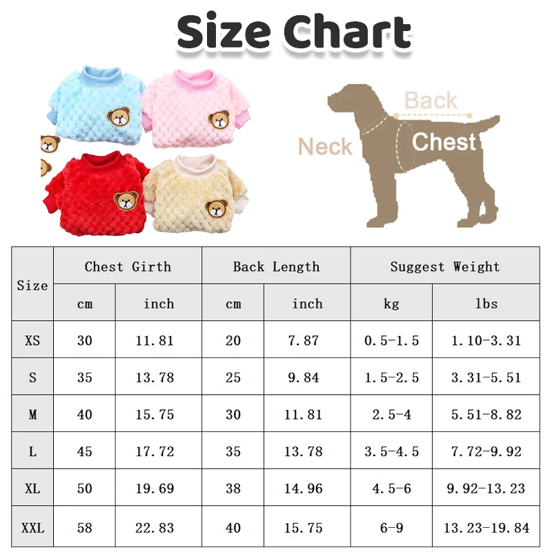 XS: Chest 30cm/11.81" ; Length 20cm/7.87" ;Suggest Weight 0.5-1.5 kg/1.10-3.31 lbs.