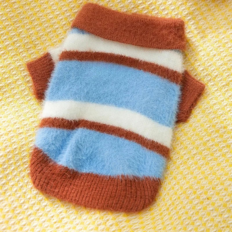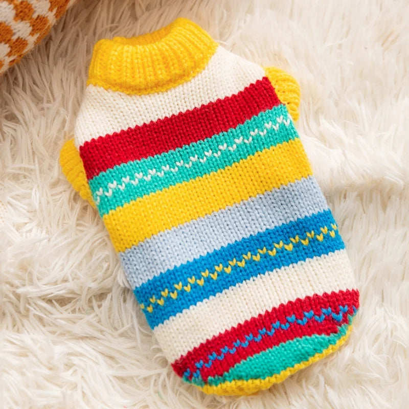 Winter Pet Knitted Sweater: Cute Striped Bear Print Turtleneck for Dogs & Cats