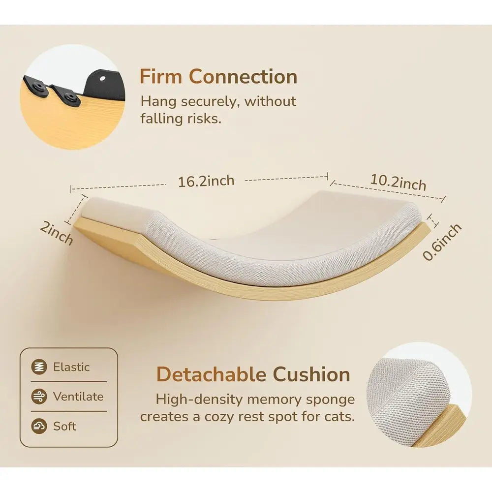 This 4-piece set is a complete climb-and-rest solution for your feline friend. It includes a curved nest for sleeping, two sisal-wrapped ladders for climbing, and a flat perch for lounging or observing the room. The chic curved design not only adds style but also promotes healthy rest by supporting your cat's spine and joints. The elevated and curved beds mimic natural nesting behavior, reducing stress for your pet.